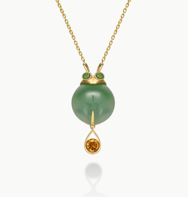 晓精灵身姿圆润,以温润玉石镶嵌18K金,凝聚大自然的灵韵,採撷十二颗蕴含守护能量的诞生石,化作精灵的祝福,轻轻落在锁骨间,为佩戴者点亮专属光芒。