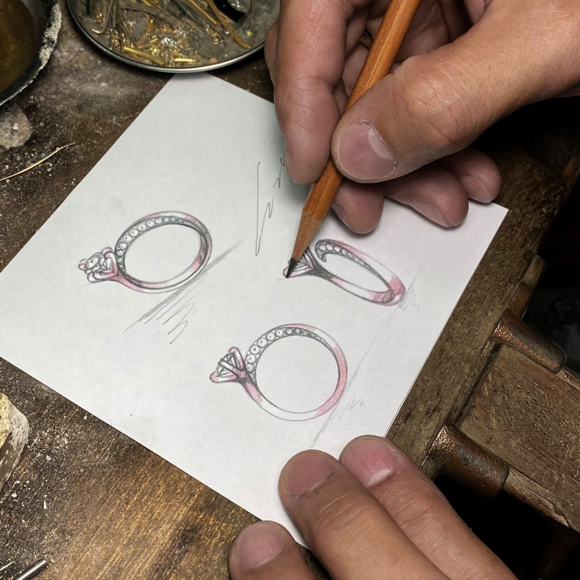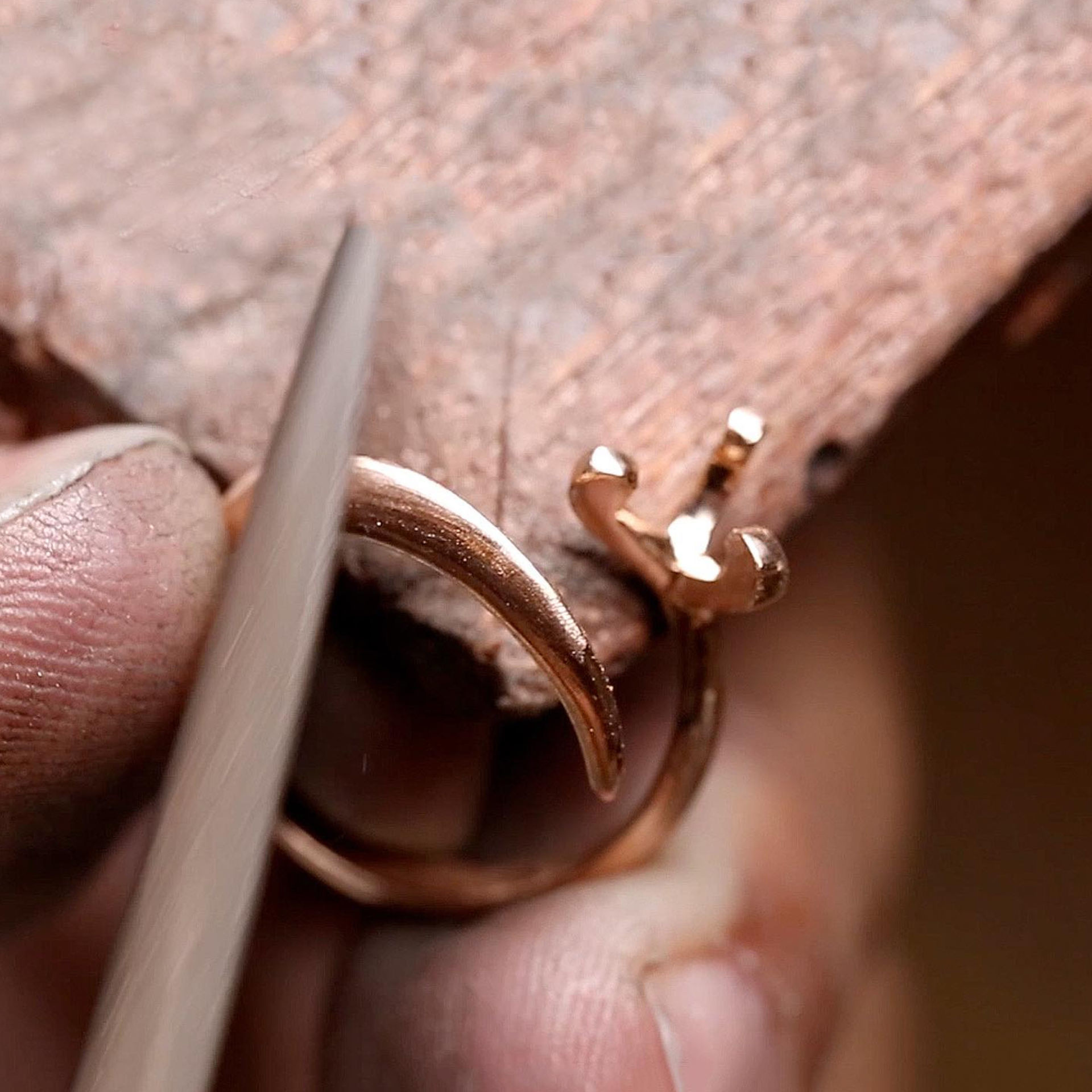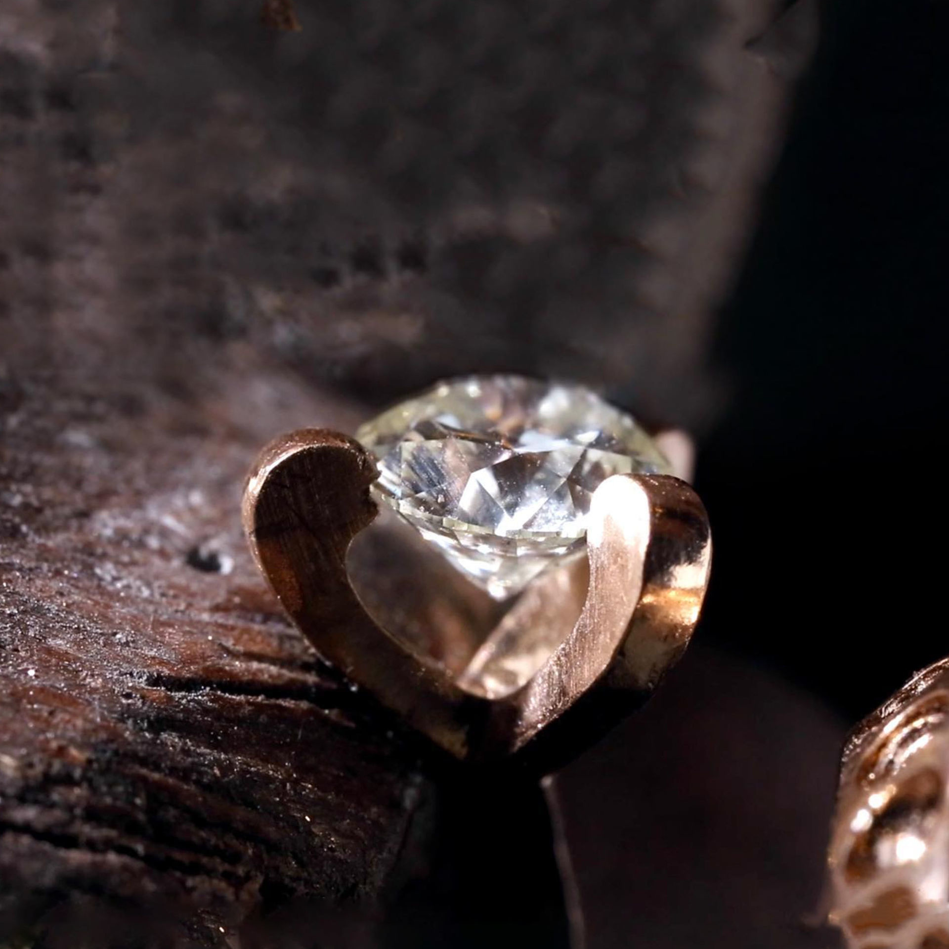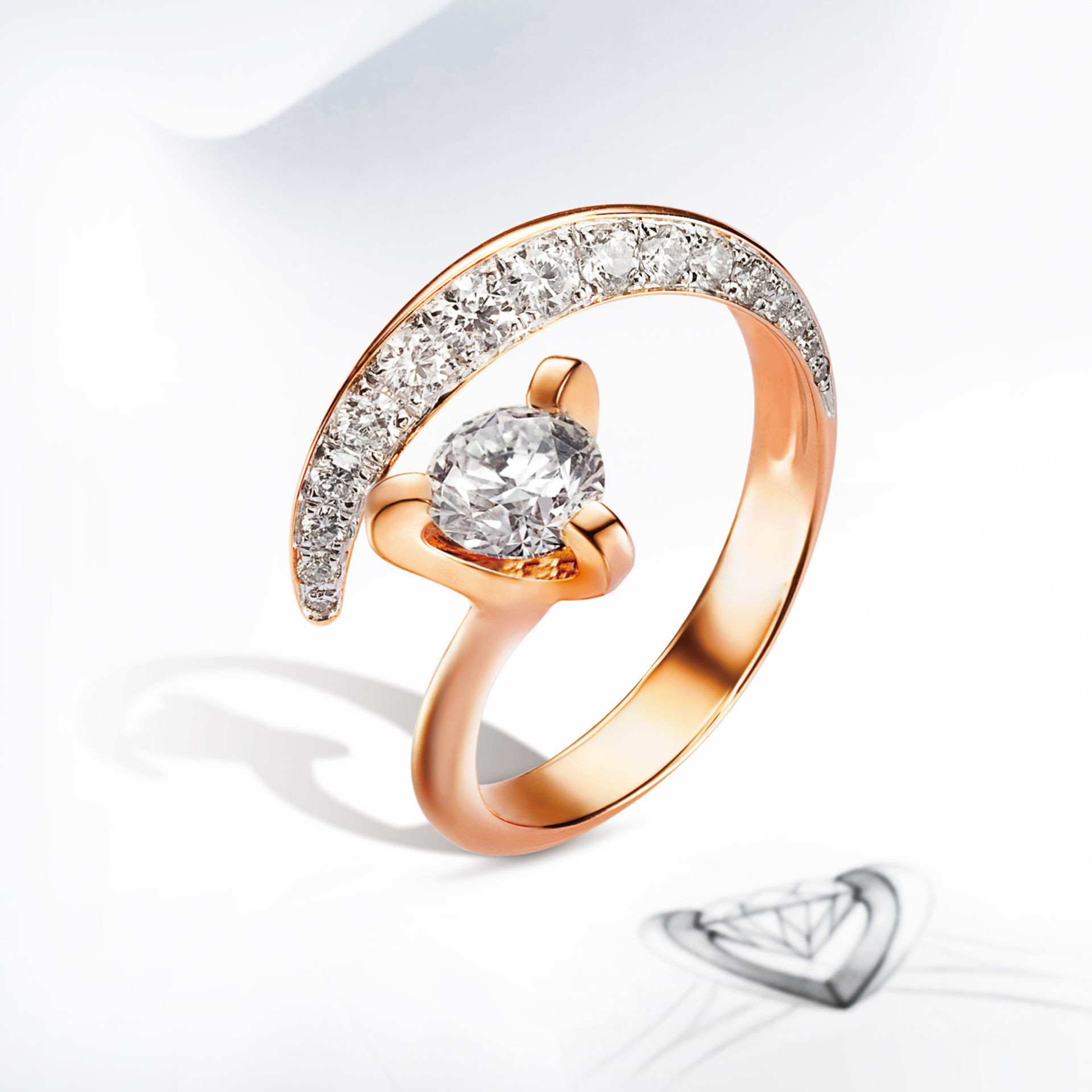 以三个不到1mm宽幅的支点,将钻石腰围精准的固定于三爪车沟间,并将每个镶爪间的内外均呈现心形的空间。